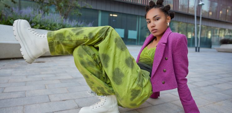 Culoarea joacă un rol esențial. Deși moda futuristă este adesea asociată cu argintiu, gri metalic și alb optic, paleta poate include și tonuri neutre, pasteluri reci sau accente electrice. Dacă vrei un look discret, mizează pe monocromie – alb complet, gri deschis sau negru integral. Dacă preferi un accent modern, poți adăuga o pată de culoare printr-o geantă sau o pereche de pantofi într-o nuanță intensă. Evită însă combinațiile prea contrastante, care pot rupe armonia vizuală a outfitului.